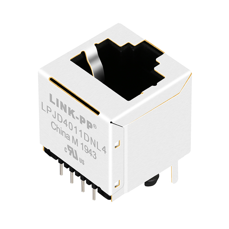 LPJD4011DNL4 is a vertical RJ45 connector developed by LINK-PP INT'L TECHNOLOGY CO., LIMITED, which is essentially positioned as a Through-Hole Reflow (THR) connector with 10/100 magnetic components. It is adapted to Ethernet scenarios, supporting 10/100 Base-T transmission rate, and adopts a 1x1 port design. The contact configuration is 8P8C (complying with the RJ45 Ethernet interface standard), and it is a non-PoE (Power over Ethernet) type. The port has 4 built-in magnetic cores, and the PCB mounting angle is a top-entry type, which can meet the interface requirements of conventional local area network (LAN) devices.